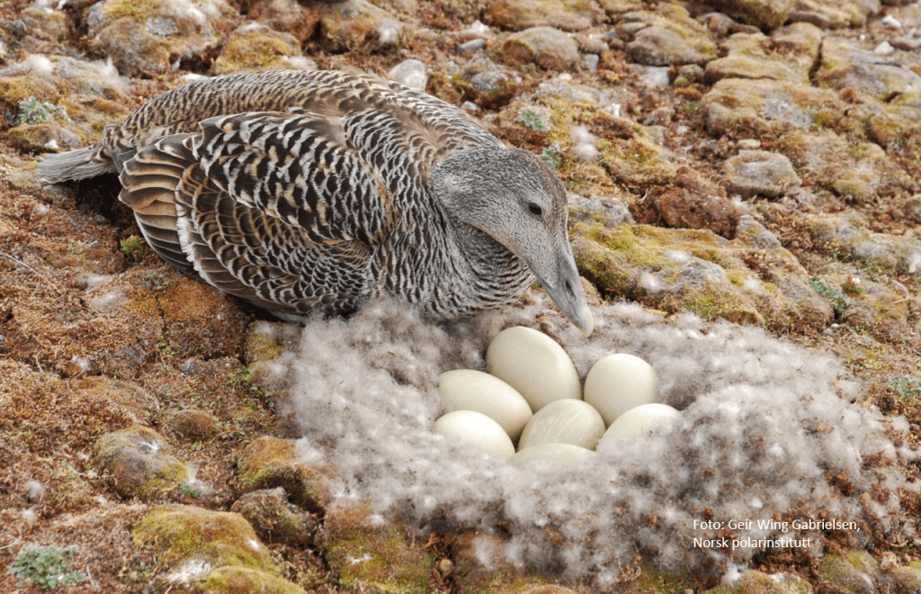 Uten feltarbeid, ingen prøver til banken. I juni i sommer samlet Kjetil Sagerup (forsker ved Akvaplan-niva) inn egg fra ærfugl (Somateria mollissima) og krykkje (Rissa tridactyla) fra Kongsfjorden på Svalbard til miljøprøvebanken (MPB). Tillatelse for arbeidet er gitt av Sysselmannen og har RIS-ID 5845. Innsamlingen gjennomføres i forbindelse med feltarbeid for forskningsprosjekt på polarmåker (SEAPOP og MULTISTRESS). Innsamling for MPB er ikke fullfinansiert, noe som betyr at forskerne er avhengige av å gjøre dette som en del av andre prosjekter. Innsamlingen av eggene er det første som gjøres når Kjetil og hans kollegaer kommer ut i felt. For ærfugl er det på tampen av rugingen, noe dunmengden i bildene gir en indikasjon på. For krykjene sin del er forskerne ute i perfekt tid. Andre forskere som arbeider i krykkjefjellet gir beskjed om når egglegging starter og når eggleggingen er på topp. Siden krykkjene vanligvis er litt senere enn ærfuglene betyr dette vanligvis og også for 2018 at eggene er ferske. Forskerne melder at arbeidet gikk uten noen vanskeligheter og de var i stand til å samle inn alle egg som skulle inn. Nå ligger eggene trygt på plass i bankens fryselager, alle godt merket med art, sted, år og hvor man finner tilleggsinformasjonen om prøvene. Hvem vet, kanskje du analyserer noen av akkurat disse eggene om 20 år for stoffer som vi ikke vet finnes i disse eggene idag?